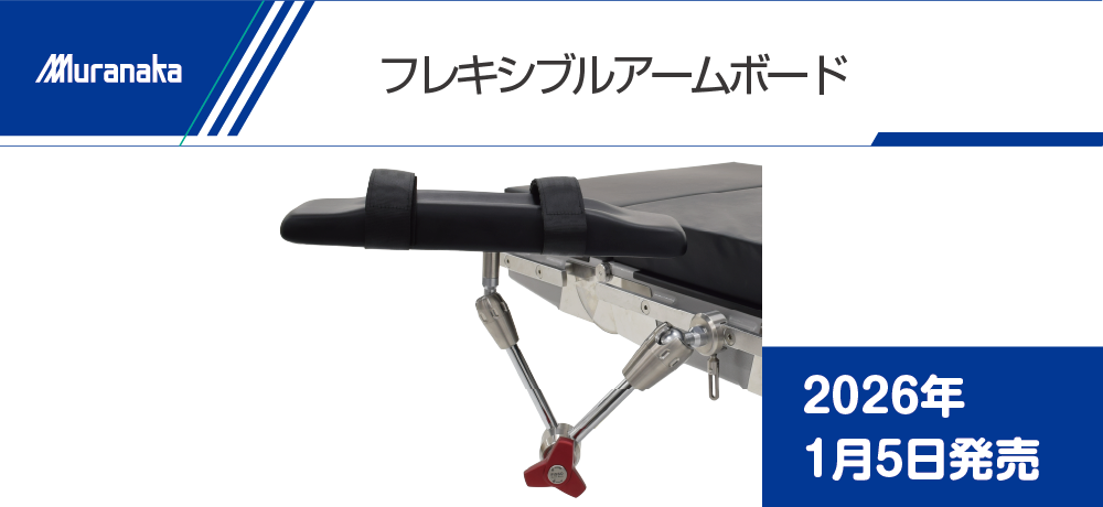 この度、「フレキシブルアームボード」を発売開始させていただくこととなりましたので、ご案内申し上げます。本製品は手術台のレールに装着し、1つのノブ操作で3か所の関節を同時に固定できます。アームボードを任...